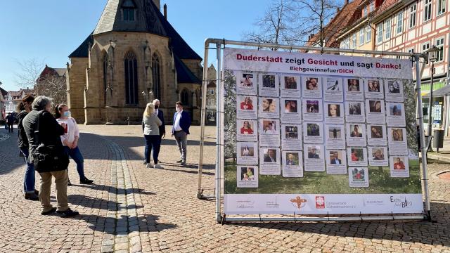 31 März 2021 Das Ergebnis der Gemeinschaftsaktion von Treffpunkt Stadtmarketing, Familienzentrum, Familienservice und Dekanatsjugendzentrum ist in der Duderstädter Markstraße zu sehen. Isabel Lubojanski, Thorsten Feike, Anka-Maria Walther, Elvira Werner