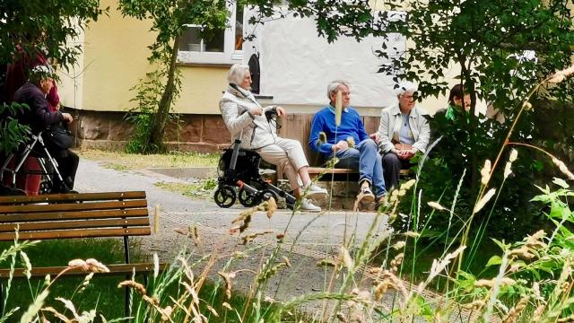 Allmorgendlich erwarten die Gäste während des Frühstücks einen Überraschungsgast. Heute widmete Renate Gatzemeier, mit Künstlername Rebecker Rezi, der Gruppe ein zweiseitiges Gedicht zum Projekt „Urlaub ohne Koffer“, das dem Team bereits in der frühen Morgenstunde vor Rührung Tränen aufsteigen ließ. Anschließend begrüßte von der Geschäftsführung der Caritas Südniedersachsen Vorstandssprecher Ralf Regenhardt die Urlauber. Als Tagesbegleiter zu den „östlichen Perlen“ kam Eckart Lintzel, ein „Innenarchitekt“ der deutsch-deutschen Einheit im Eichsfeld, der authentisch und spannend durch den Tag geleitete.