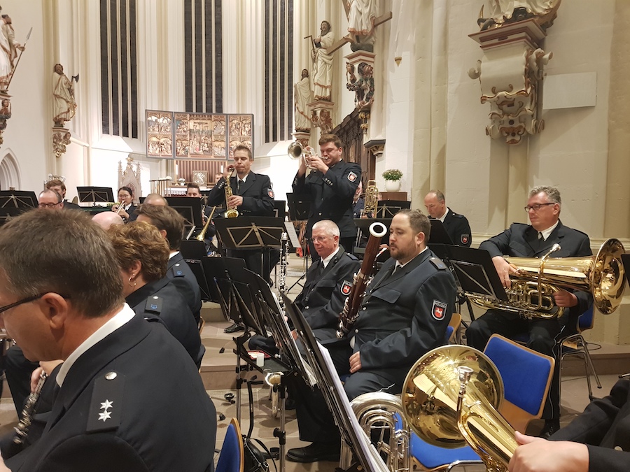 Propst Bernd Galluschke und Polizeihauptkommissar Karl-Hubert Wüstefeld begrüßten die zahlreich erschienenen Gäste in der Basilika St. Cyriakus, bevor das Polizeiorchester mit seinem Können die Anwesenden „verzauberte“. Unter der Leitung von Thomas Boger nahm es sein Publikum mit auf eine Zeitreise durch die Musikgeschichte. Neben klassischen Kompositionen von Johann Sebastian Bach erfüllten mit dem Musikstück „Arabesque“ auch orientalische Klänge die Basilika.