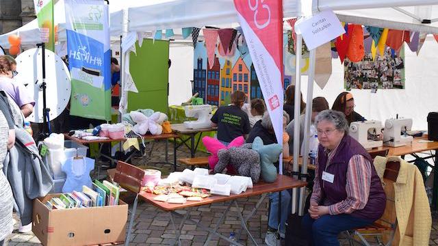 Auch das Nähcafé aus dem Inklusiven Campus und der FAIRKAUF-Laden der Caritas Südniedersachsen waren am Duderstädter Stand vertreten.