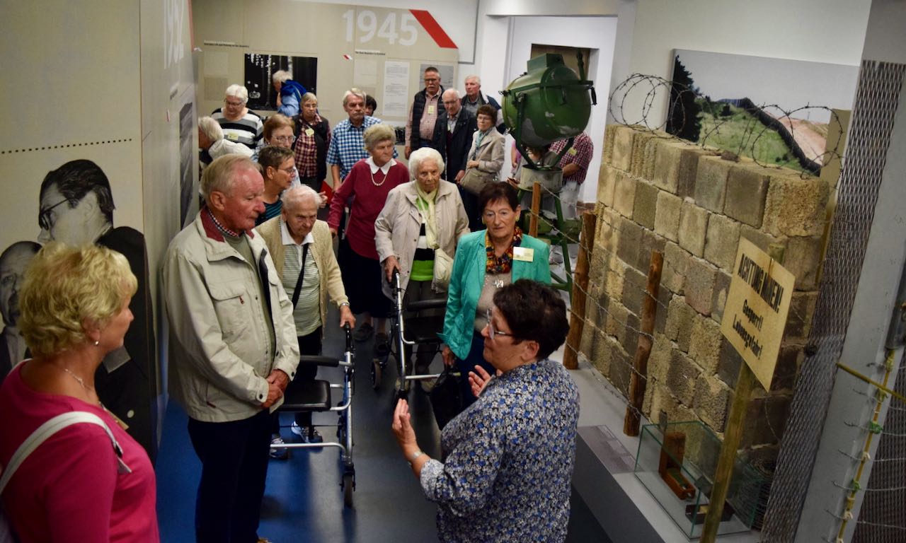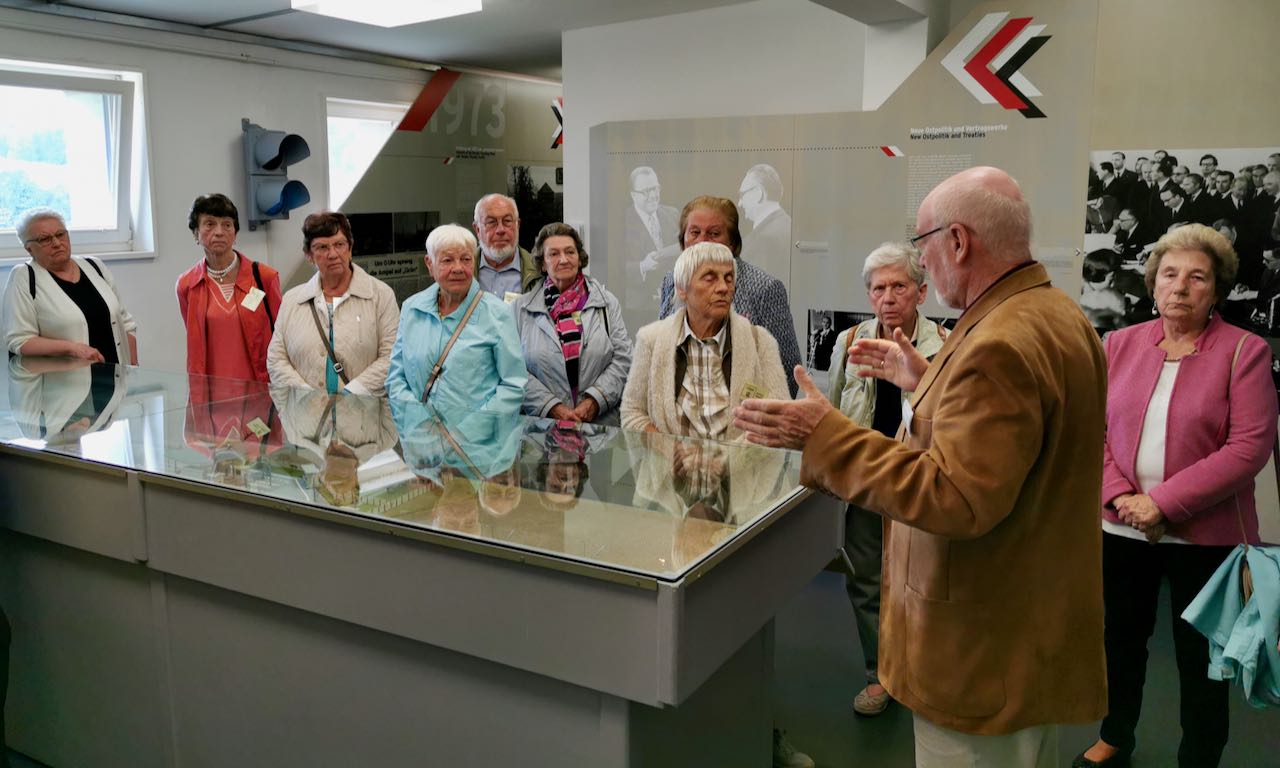 Zunächst kam Stefan Koch als Überraschungsgast zu Besuch, um sich als einer der Bürgermeisterbewerber vorzustellen. Pünktlich startete die Gruppe nach einer lustigen Grenzgeschichte und Einstimmung durch Frau Hellbrück zum Grenzlandmuseum, wo wir von Johannes Broermann von der KirchenZeitung, aber auch von zwei Reisebegleitungen durch das Museum erwartet wurden.