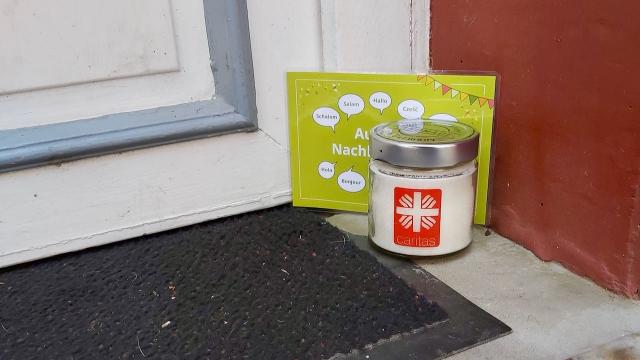 „Heute, am 28. Mai, ist Tag der Nachbarn und ich dachte, wir machen unseren Nachbarn in der Scharrenstraße eine kleine Freude mit einer netten Geste“, sagt LWH-Leiter Johannes Riemekasten-Remy. Gemeinsam mit den Kerzen wurden auch Postkarten verteilt, unterstützt wurde Riemekasten-Remy dabei von LWH-Mitarbeiter Detlef Gabler.