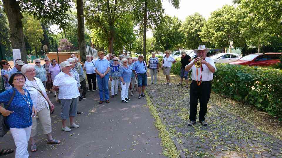 Das Mittagessen konnten wir in gastfreundlicher Atmosphäre genießen und schon bald reisten wir weiter zum Kurpark, da Herr Wüstefeld dort als Stadtführer mit Trompeteneinsatz nicht nur Geschichten zum Hexenwesen des Harzes erzählte, sondern auch die Stadtgeschichte und über das Bergbauwesen der Region.