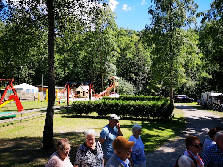 Nach Den Betriebsführungen war es Zeit für Erholung in dem Biergarten des Campings Gelände der Eulenburg, ein früheres Fabrikgelände. Bei selbstgebackenem Heidelbeer- und Mandelkuchen schöpften wir bald Kraft um mit Hr Gröning das Gelände und ihre Vergangenheit, aber auch die heutige Nutzung zu entdecken. Gruppenangebote, klassischer Camping und auch das Heuhotel ist regelmäßig angefragt und schreibt in diesem Jahr positive Zahlen. Wir fühlten uns rundum wohl und es war für alle eine Neuentdeckung einer so nahen Wohlfühloase.